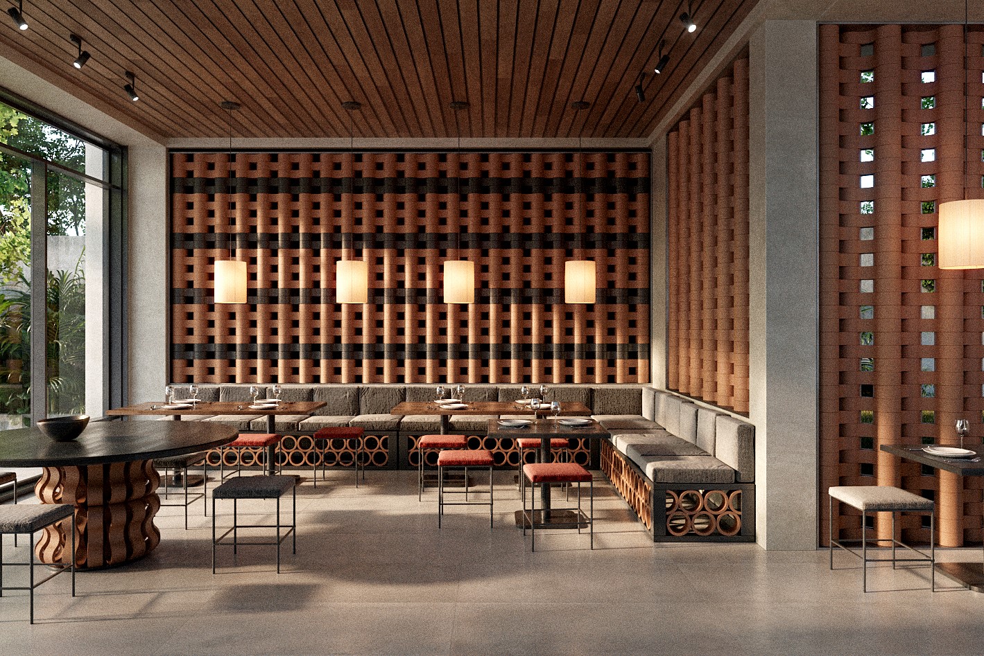 Su origen se encuentra en la observación del espacio como materia viva. En cómo una curva puede abrir un ritmo, cómo una perforación puede suavizar la luz, cómo un módulo puede transformarse infinitamente sin perder su identidad.