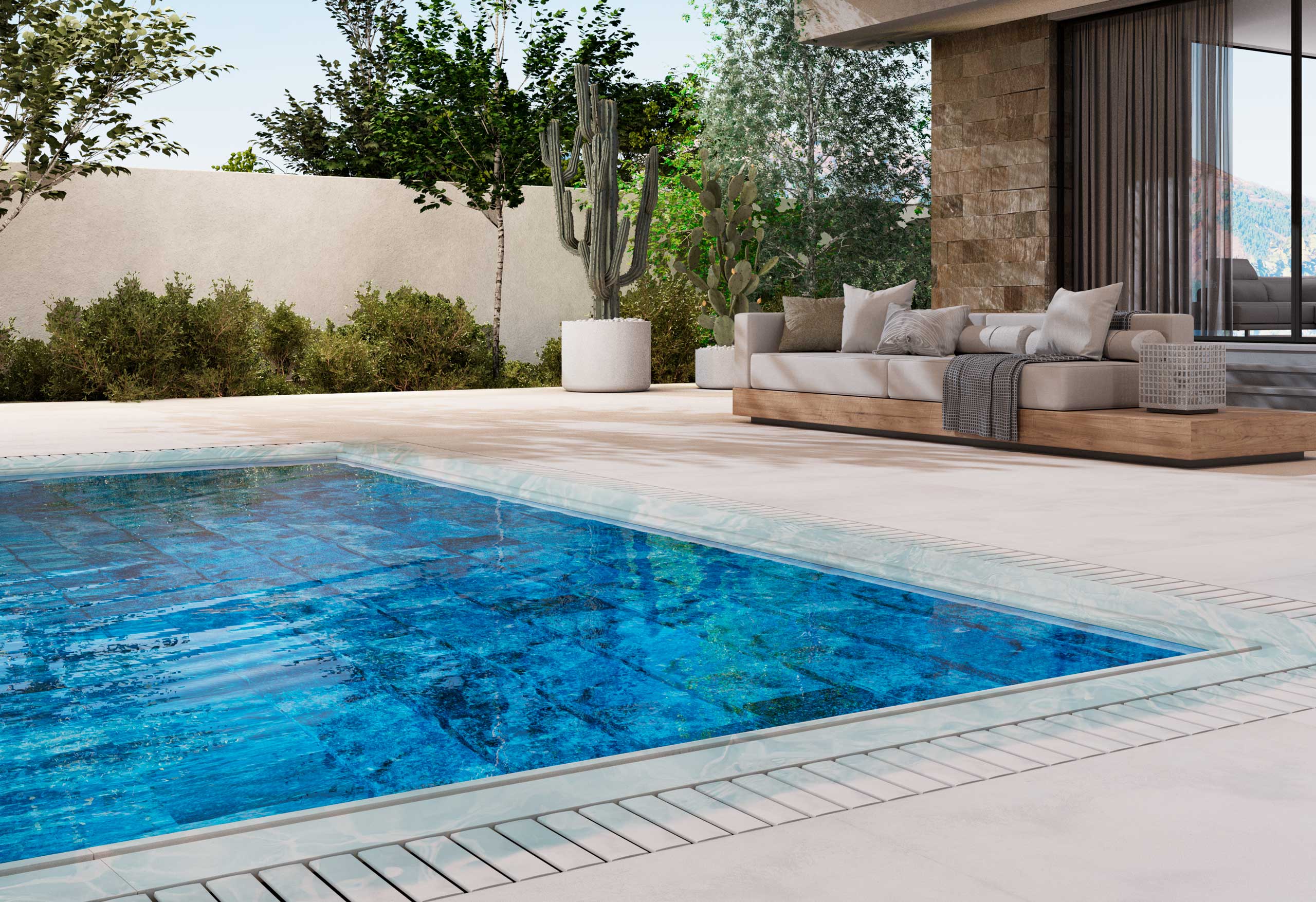 Este nuevo modelo rinde homenaje a la intrincada belleza de los corales submarinos mediante un dominio de azules intensos y matizados. Sus formas ondulantes y texturas suaves evocan un flujo natural que impregna el agua con un color profundo y un movimiento grácil, que permite infinitas combinaciones estéticas. De este modo, esta composición da vida a una superficie acuática con ondulaciones elegantes y cautivadoras, convirtiendo a Arrecife Azul en una opción perfecta para tu proyecto de piscina.