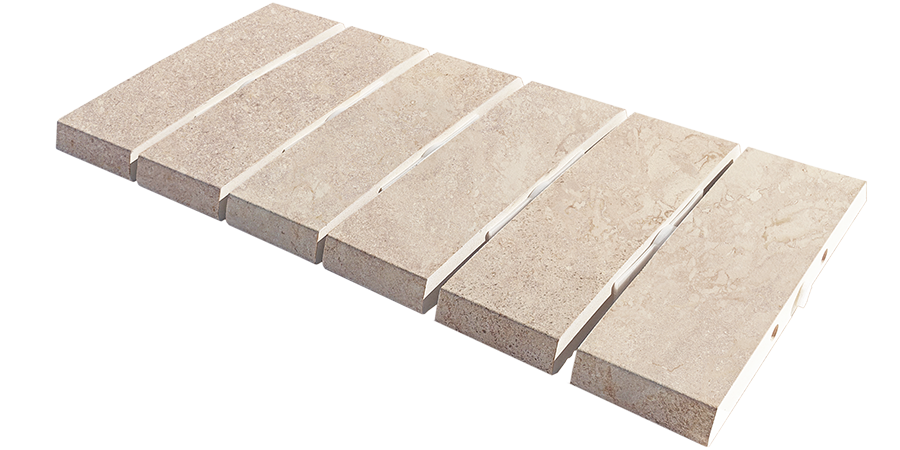 Este nuevo modelo inspirado en la piedra Travertino de Rapolano, con sutiles vetas y las características marcas de corte de esta piedra “Cross-cut“, aporta un acabado elegante a cualquier proyecto de exterior. Un diseño en color beige suave, que es perfecto como pavimento de exterior y de piscina.